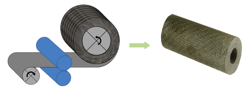 Sheet winding forming technology (left) and a CMC wound component (right)